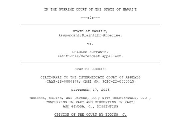 Hawaii Supreme Court justices overturned the Intermediate Court of Appeals decision in issuing this opinion last week.